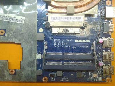 Неисправная материнская плата QIWG7 LA-7983P Rev:1.0 для ноутбука Lenovo IdeaPad G780 G770. HUB SLJ8E. Видеочип N13P-GLR-A1 nVidia GeForce GT635M. Радиатор в комплекте. Нет изображения. Без гарантий